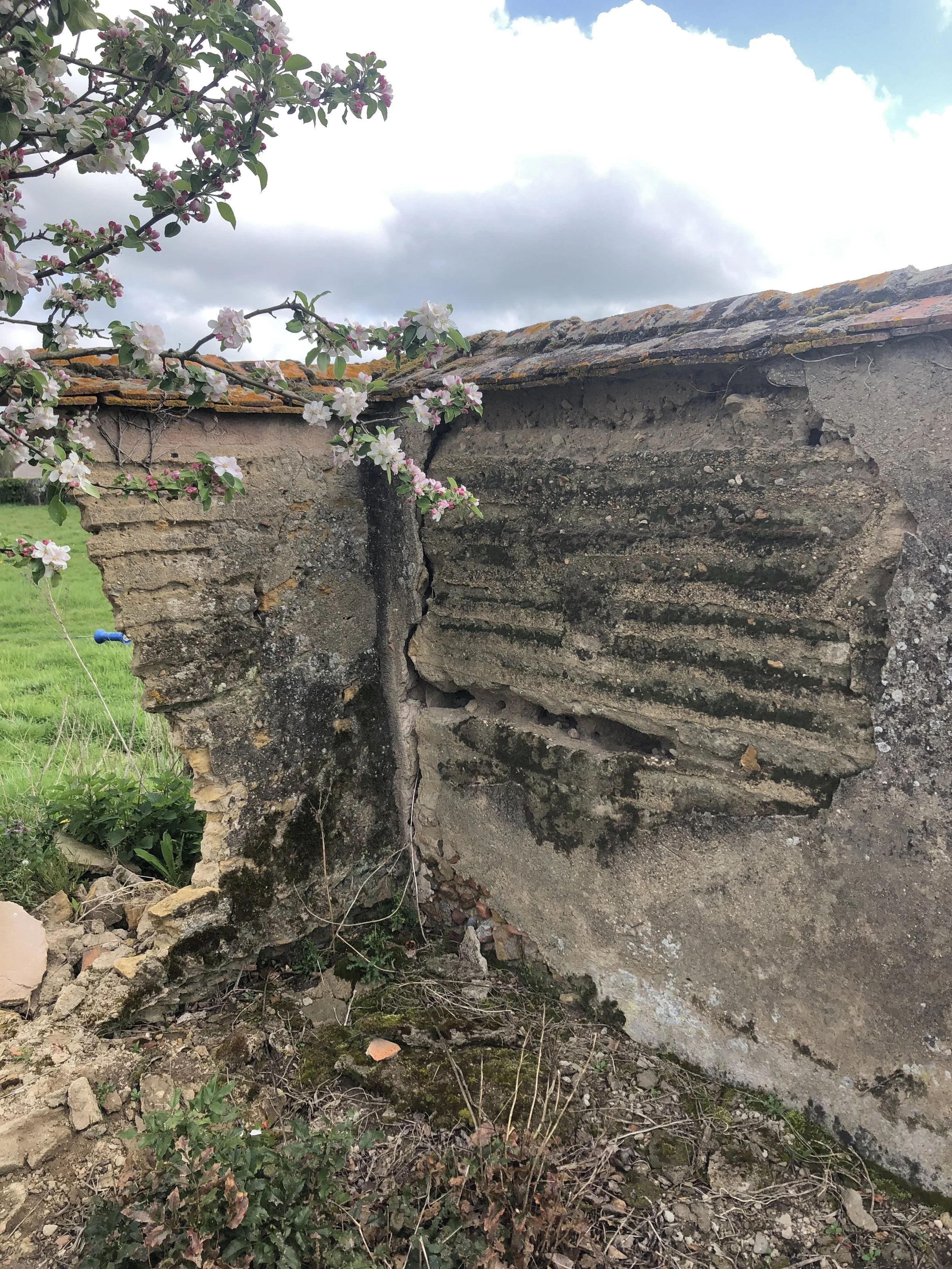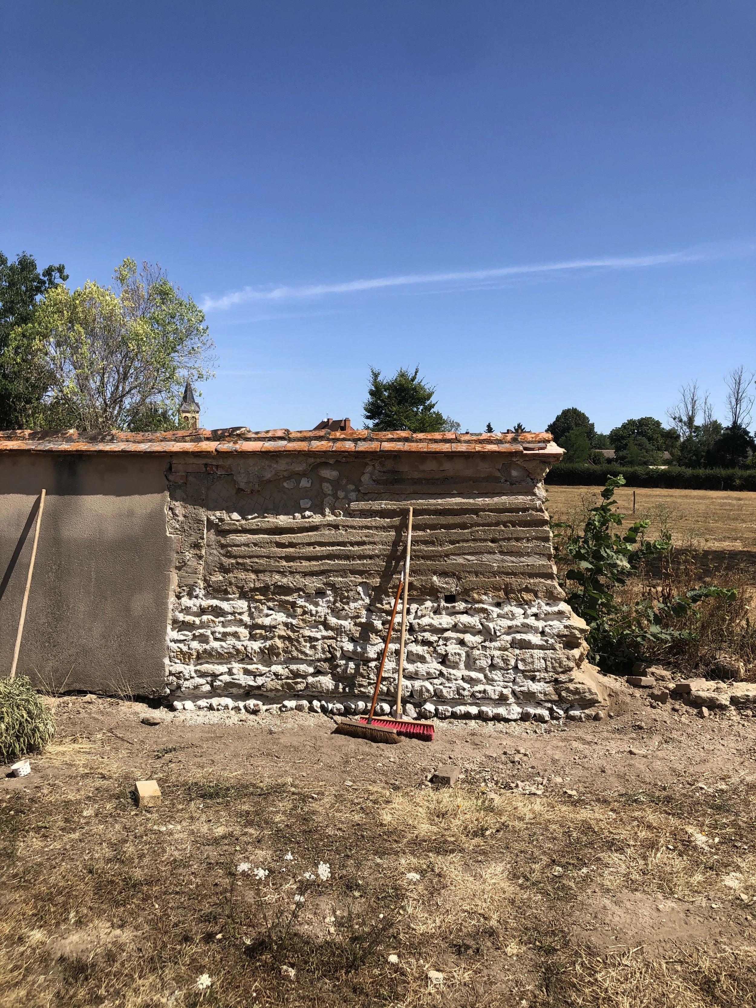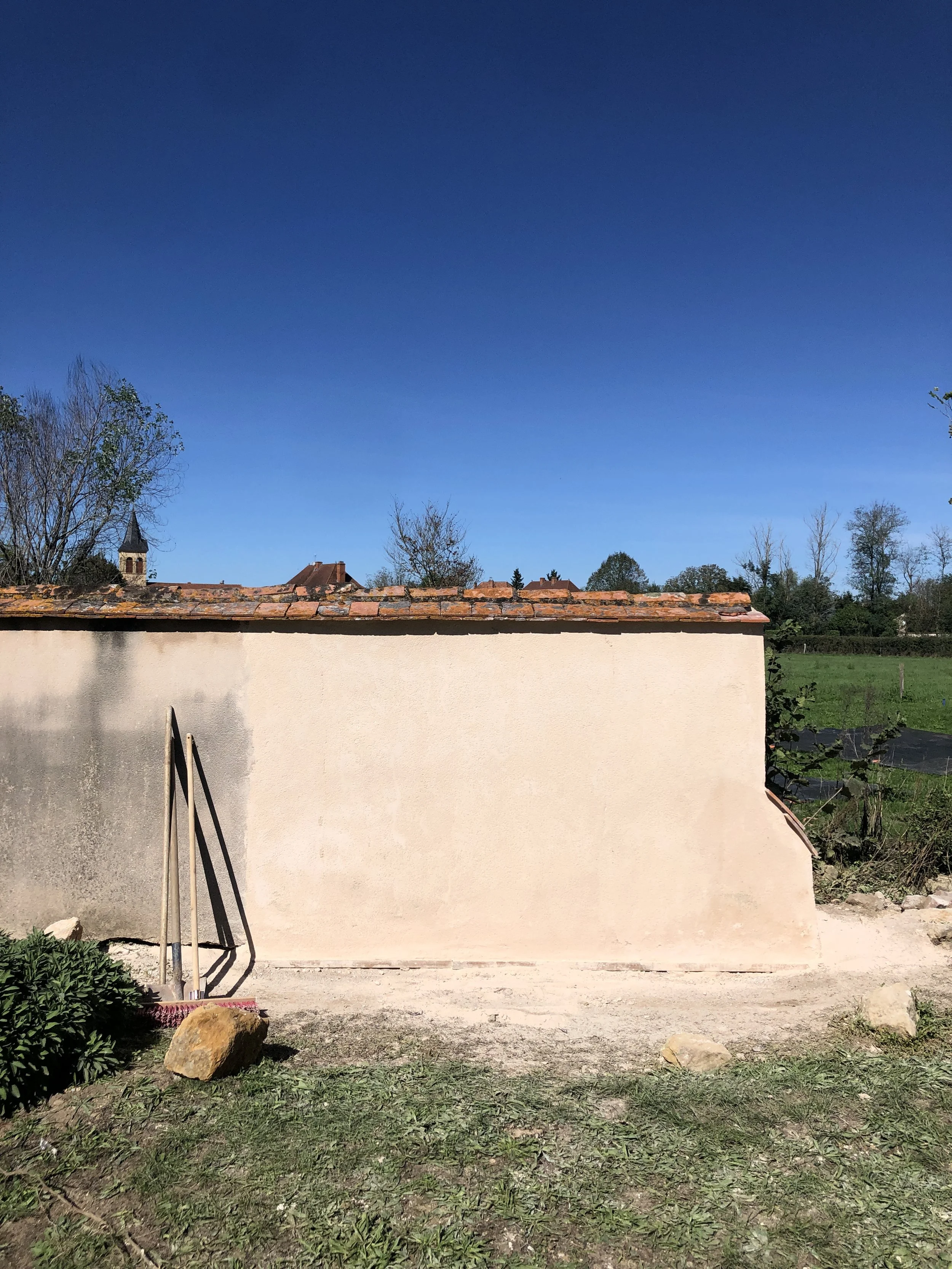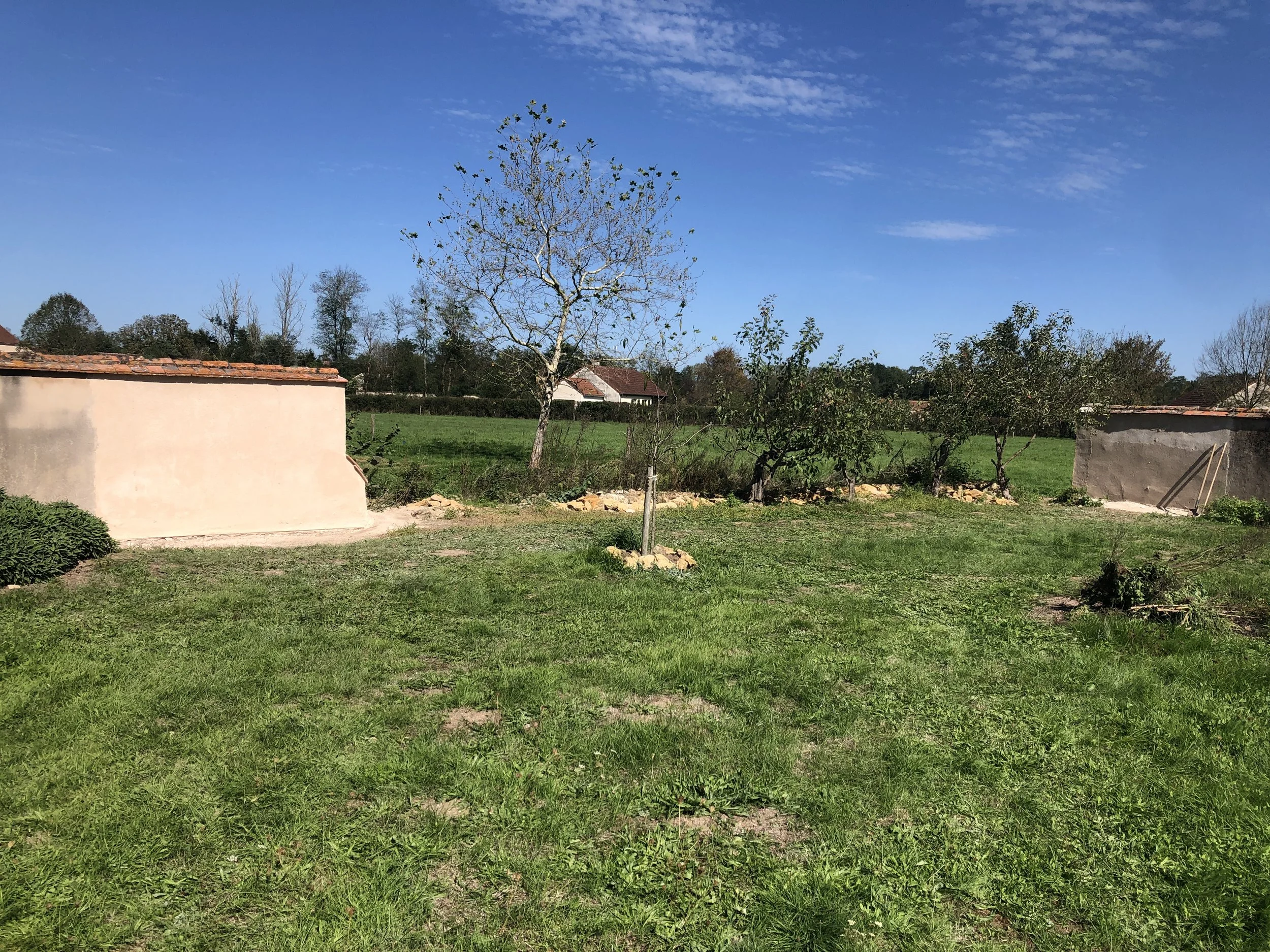 Deux jardins, autrefois séparés par un mur en pisé, se sont retrouvés réunis après son effondrement. Cet événement est devenu l’occasion d’un projet paysager simple et poétique.